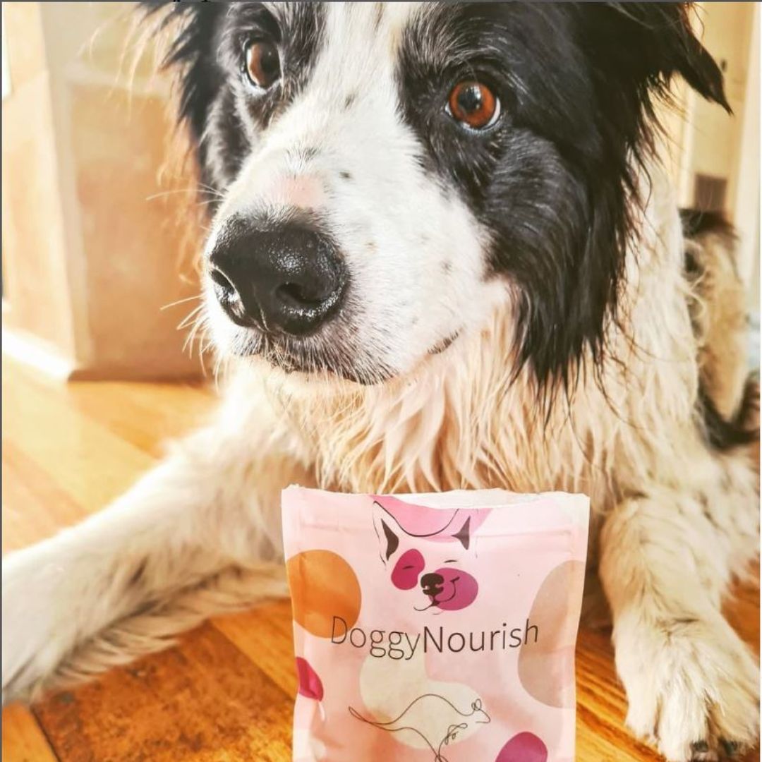 Doggy Nourish packages come in a convenient resealable bag to keep your treats extra fresh. Our 30g packets are the perfect size for a treat on the go, fitting easily into a training bag or handbag.