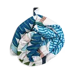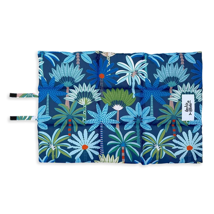 Prestige Palms, by Australian designer Jocelyn Proust, features a bold coastal pattern in a vivid blue palette with touches of green and orange. Ultra-modern and reversible, it showcases an ivory background on one side and a deep navy on the other.