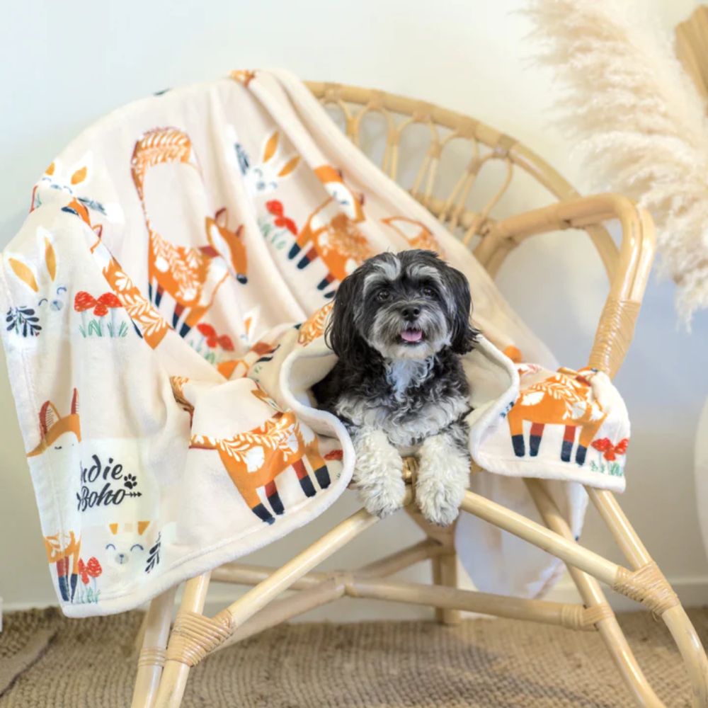 Indie Boho pet blankets are ultra plush yet light, so that smaller pets (including puppies and cats) won't feel weighted down by them. They are generously sized and cosy for the larger furkids too!